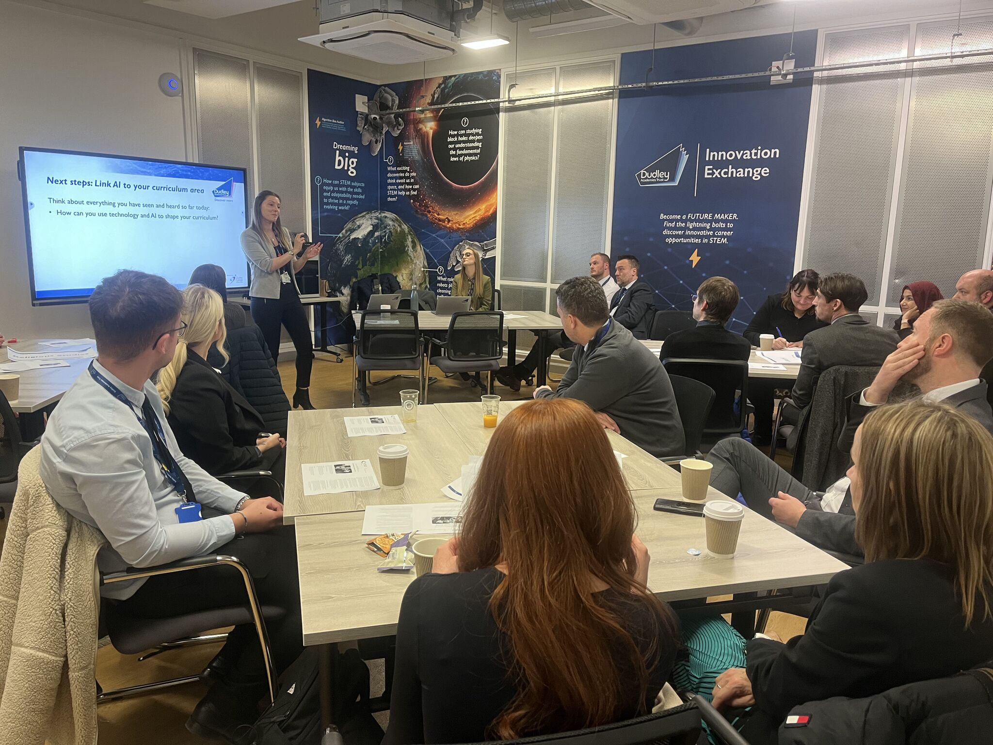 One of the highlights of the event was the unveiling of the Trust’s new Innovation Exchange Centre, located at the heart of the Millennium Point building. This state-of-the-art facility is designed to foster creativity and collaboration among learners and staff, providing a hub for developing cutting-edge educational methods and technologies. The new centre will provide an incredible opportunity to provide learners of all ages with innovative, high quality learning experiences and to significantly enhance leadership and staff development programmes. There will also be numerous benefits through accessing a wide range of resources such as Think Tank, Birmingham City University, STEAMhouse and many more organisations literally on the doorstep. Furthermore, the Innovation Exchange Centre will enable the sharing of best practice with other Trusts and institutions in the West Midlands region and beyond, significantly strengthening collaborative sector led school improvement.