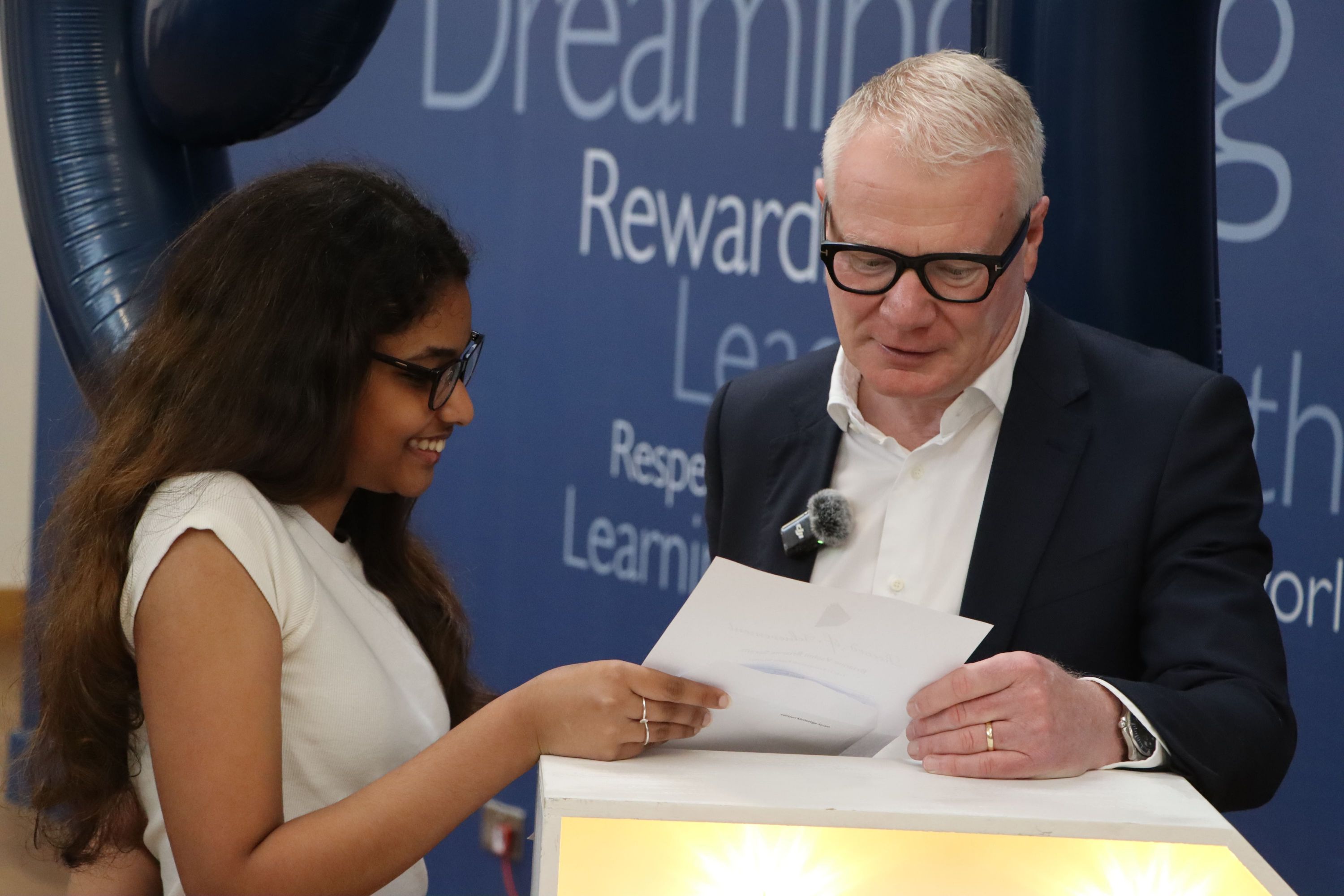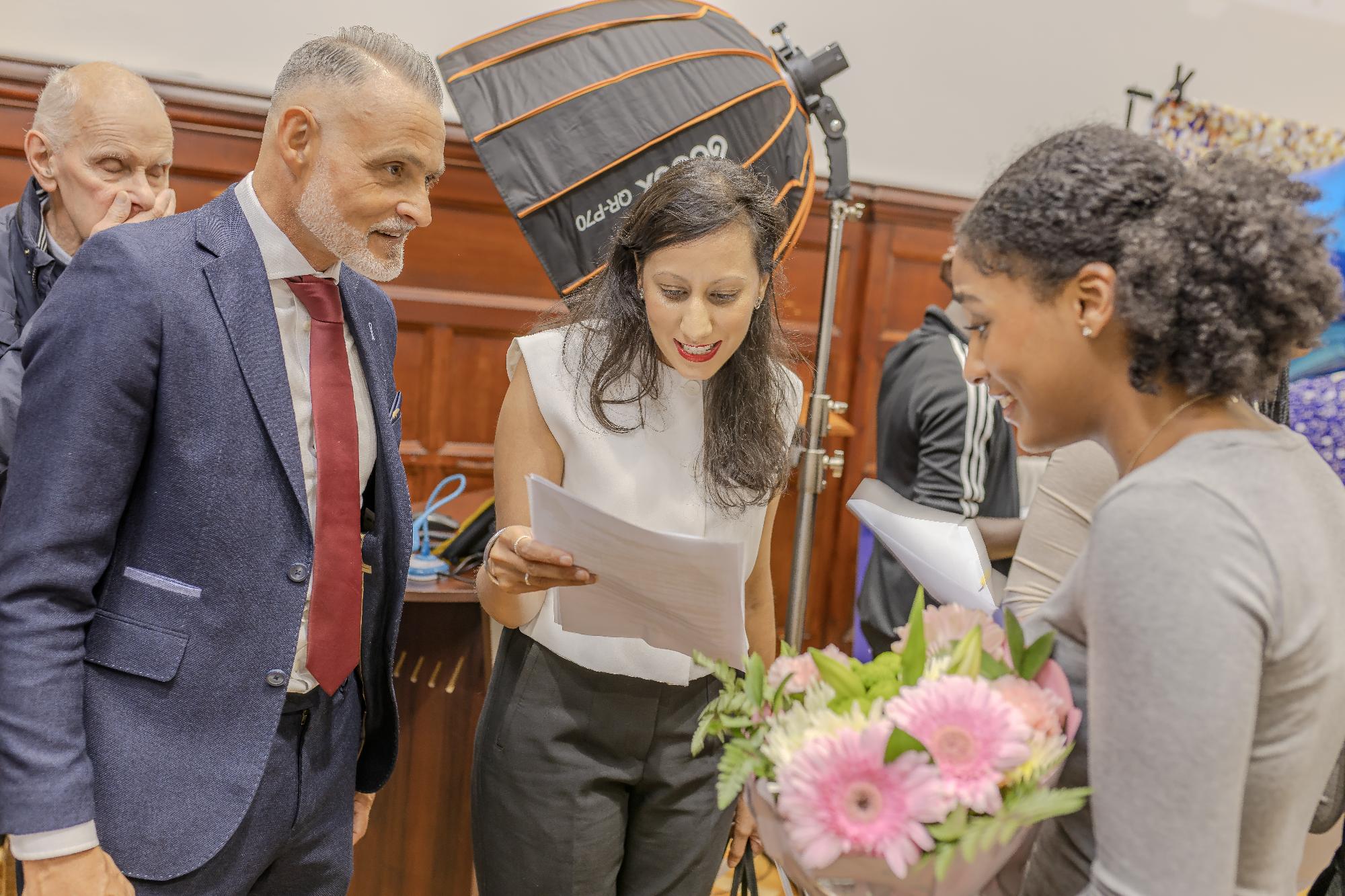 Pictured above is Richard Parker, Mayor of the West Midlands with a learner from Beacon Hill Academy (left) and Sonia Kumar, MP for Dudley alongside Ian Moore, Principal congratulating the highest achieving female learner, Adiele W from St James Academy.