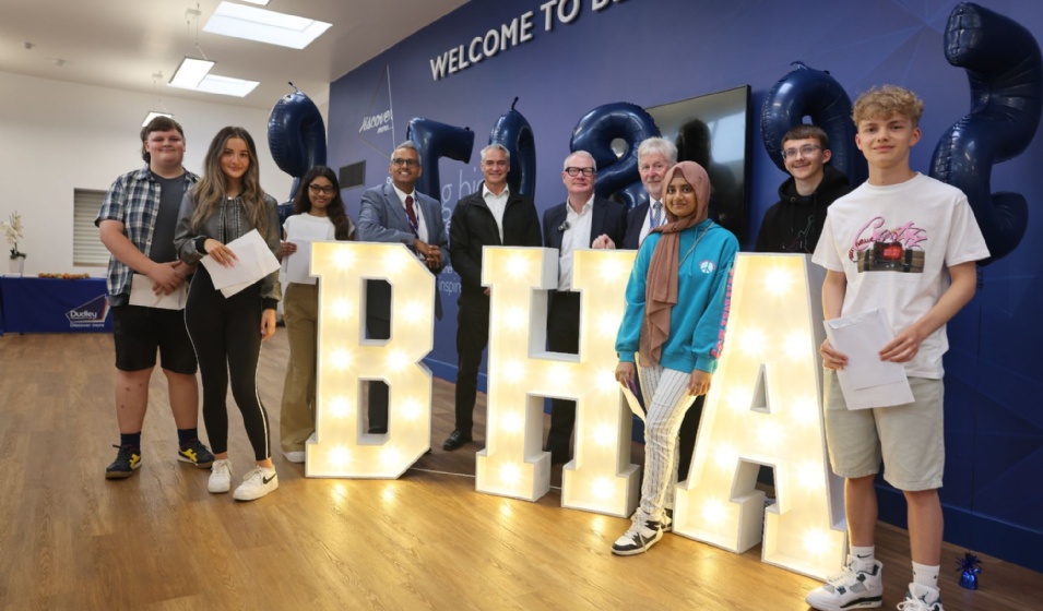Pictured within the cover image (left to right) is Oliver T, Amy H, Brianna S, Sukhjot Dhami (principal at Beacon Hill Academy), Martin Dudley (Thomas Dudley), Richard Parker, Mayor of the West Midlands, Lowell Williams (chair of the board of Trustees, Dudley Academies Trust) Manaal K, Kian T, Fraser C, at Beacon Hill Academy.